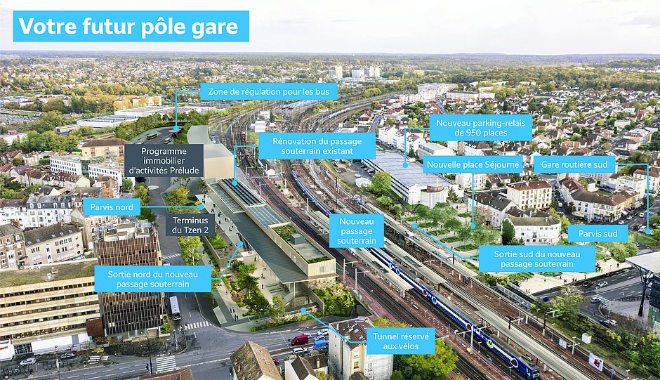 Il prévoit notamment un nouveau passage souterrain, deux gares routières modernisées, un parking-relais de 950 places, 620 places vélo, des parvis végétalisés, l’arrivée du Tzen 2 et le bâtiment tertiaire Prélude.