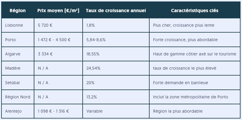 Cependant, les régions portugaises présentent des profils très différents : Lisbonne, Porto, l’Algarve, l’Alentejo, Madère, les Açores ou encore la Silver Coast offrent chacune des niveaux de prix, des environnements et des dynamiques locales distinctes.